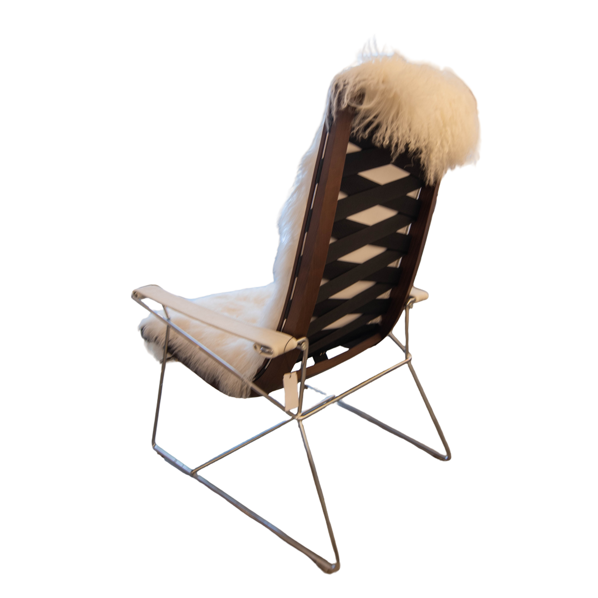 Materialien: Struktur aus Stahlrundrohr, Holzgestell, Polypropylengurte