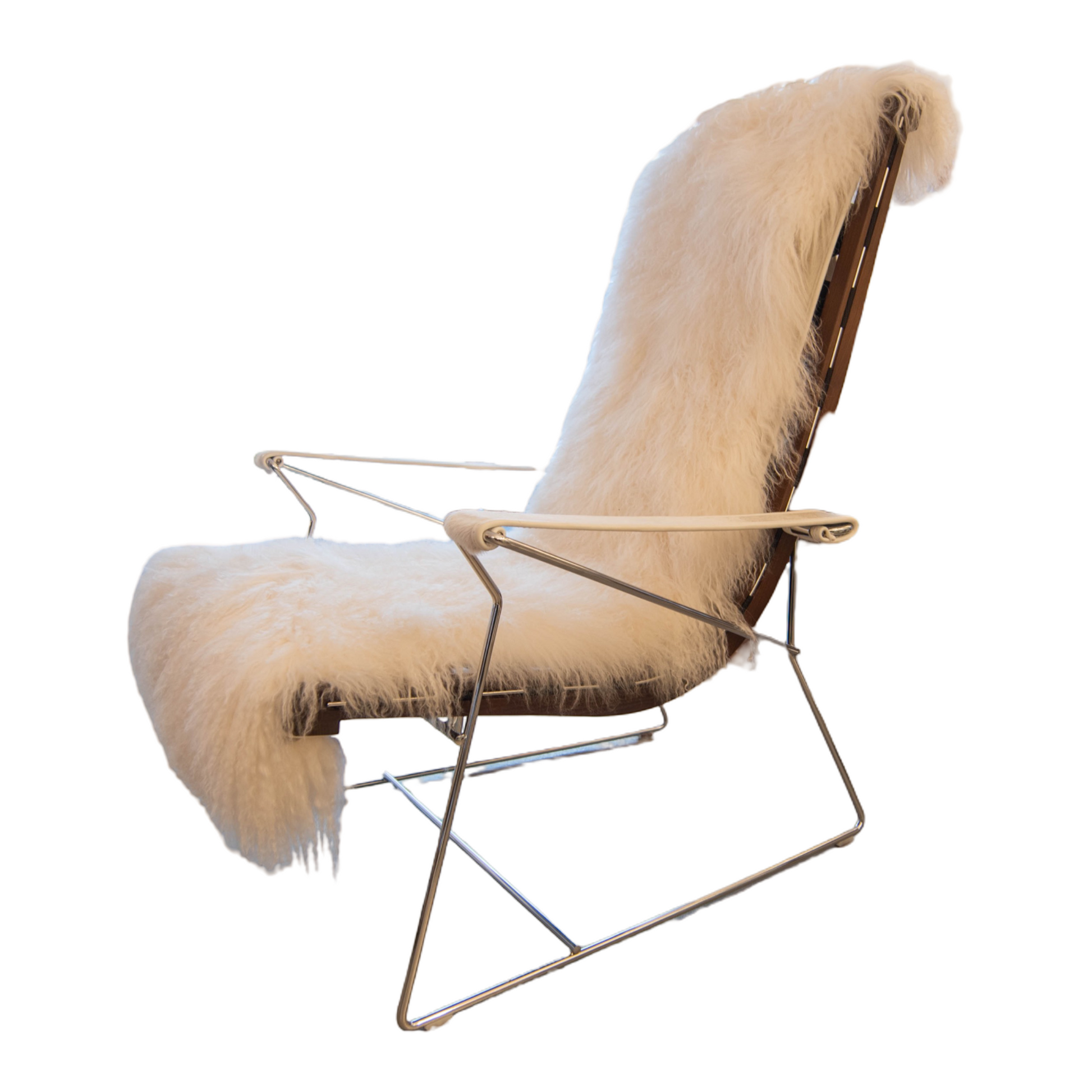 Die Kollektion umfasst Varianten mit festem Gestell sowie mit Kufen in Schaukelstuhl-Optik; letztere wirkt besonders glamourös in der Ausführung mit langhaarigem Mongolischem Lammfell.