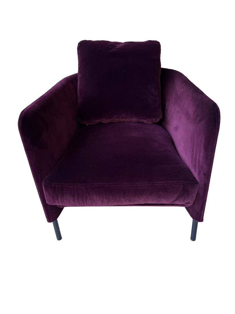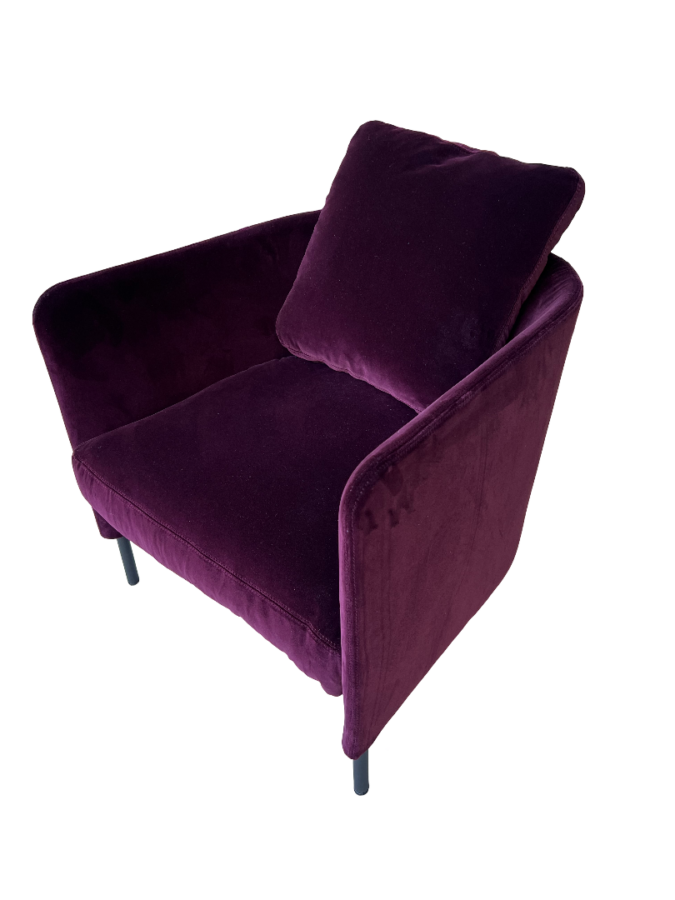 In Samt Aubergine wirkt der Tiny Blendy besonders elegant, ausdrucksvoll und zugleich wohnlich – ideal als Solitär oder als symmetrisches Paar.