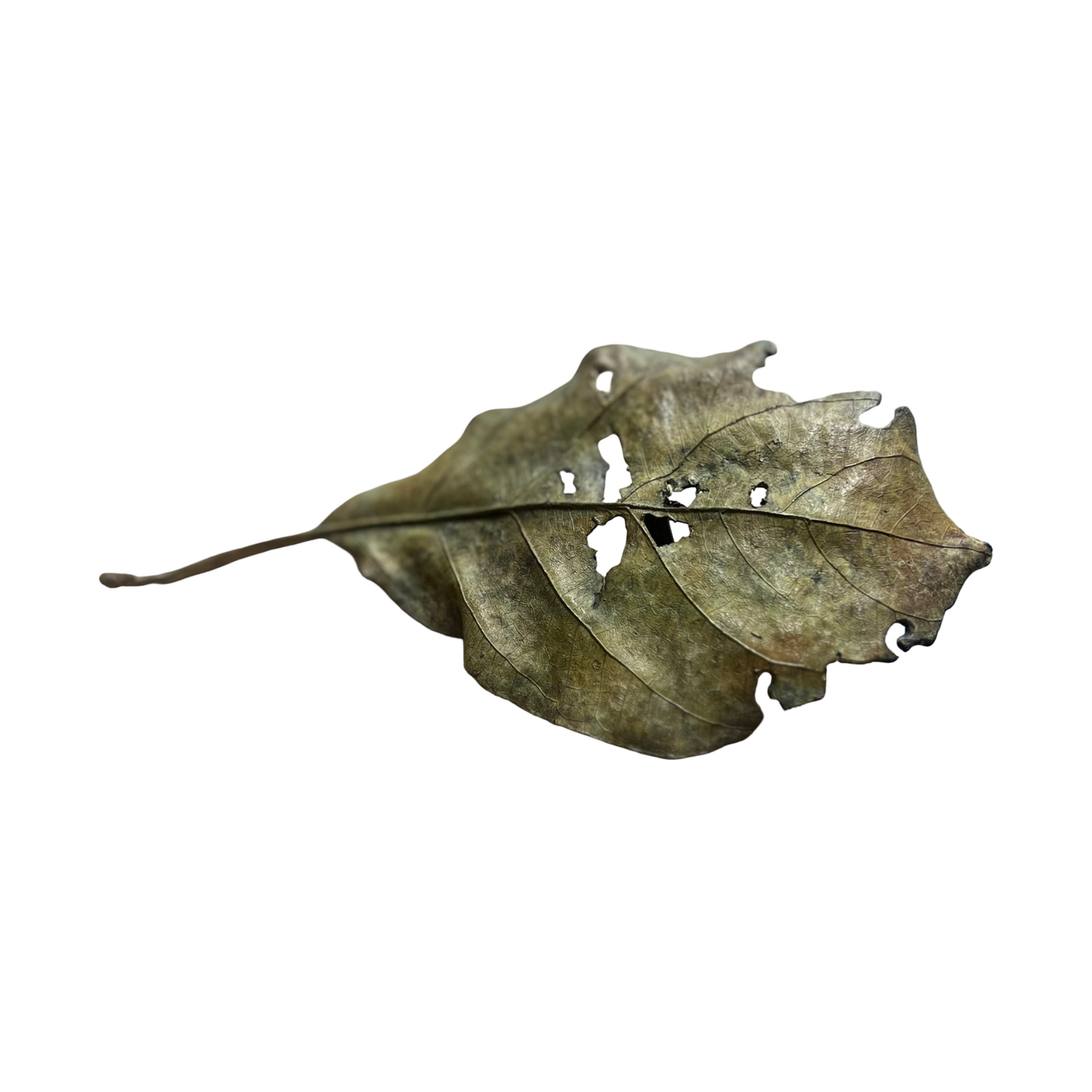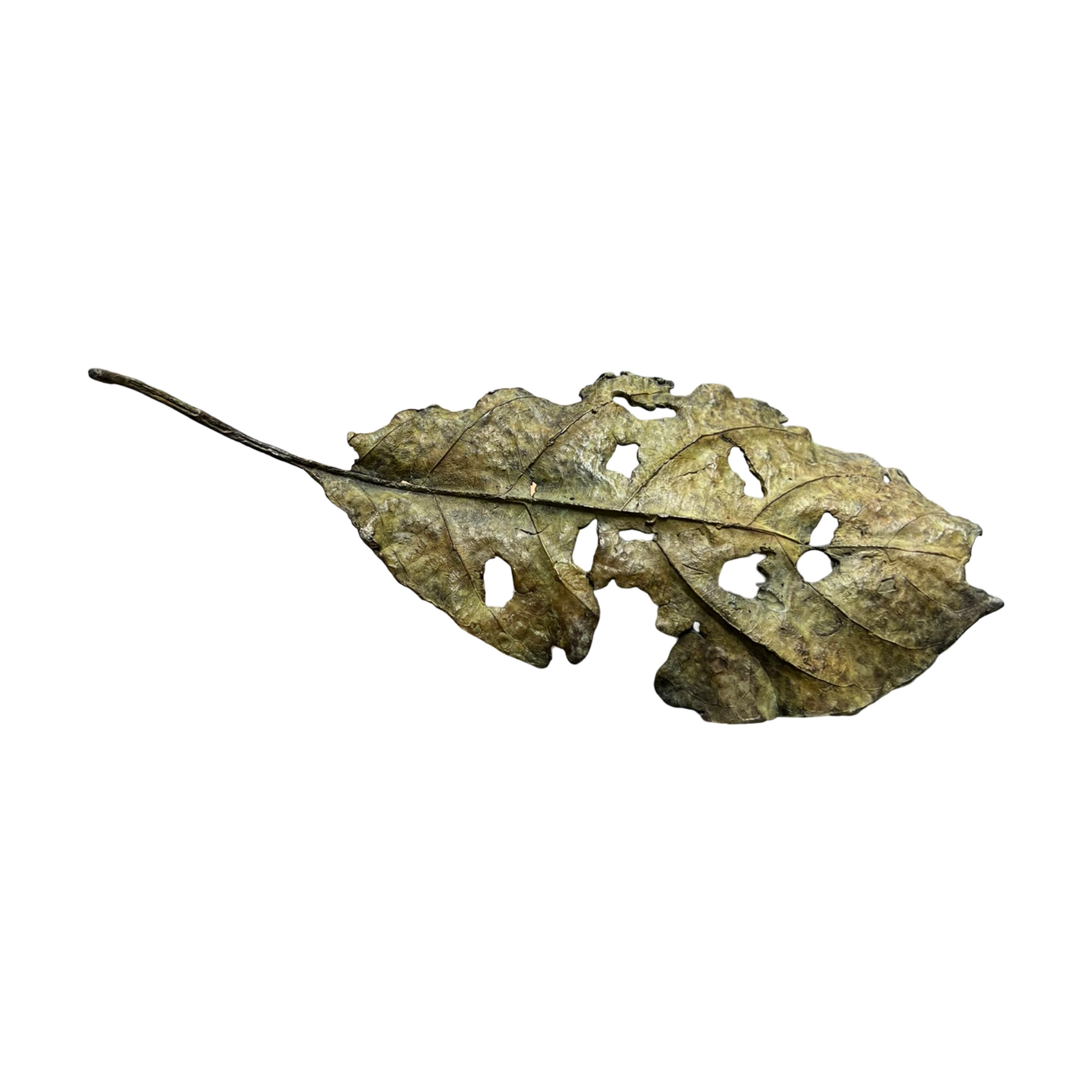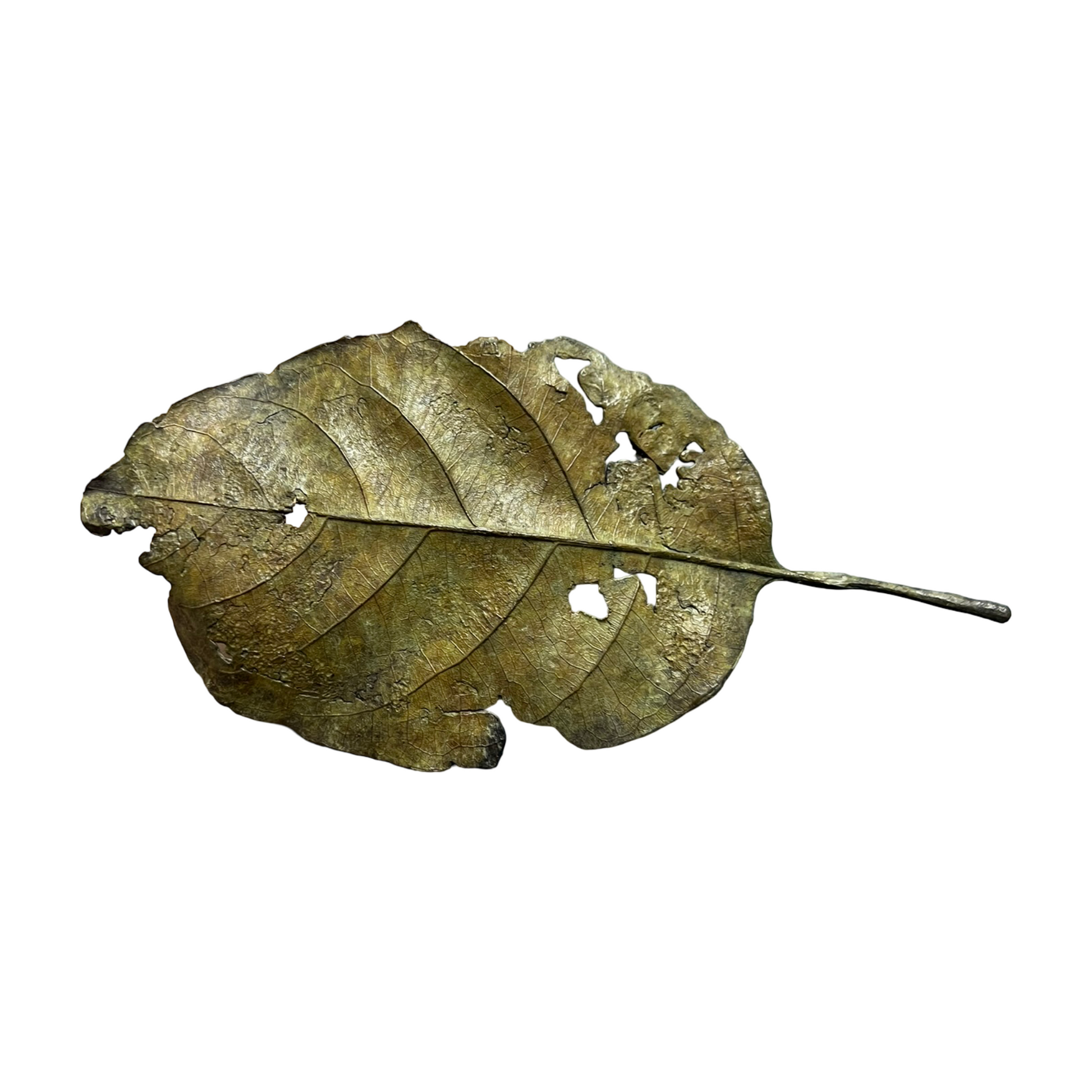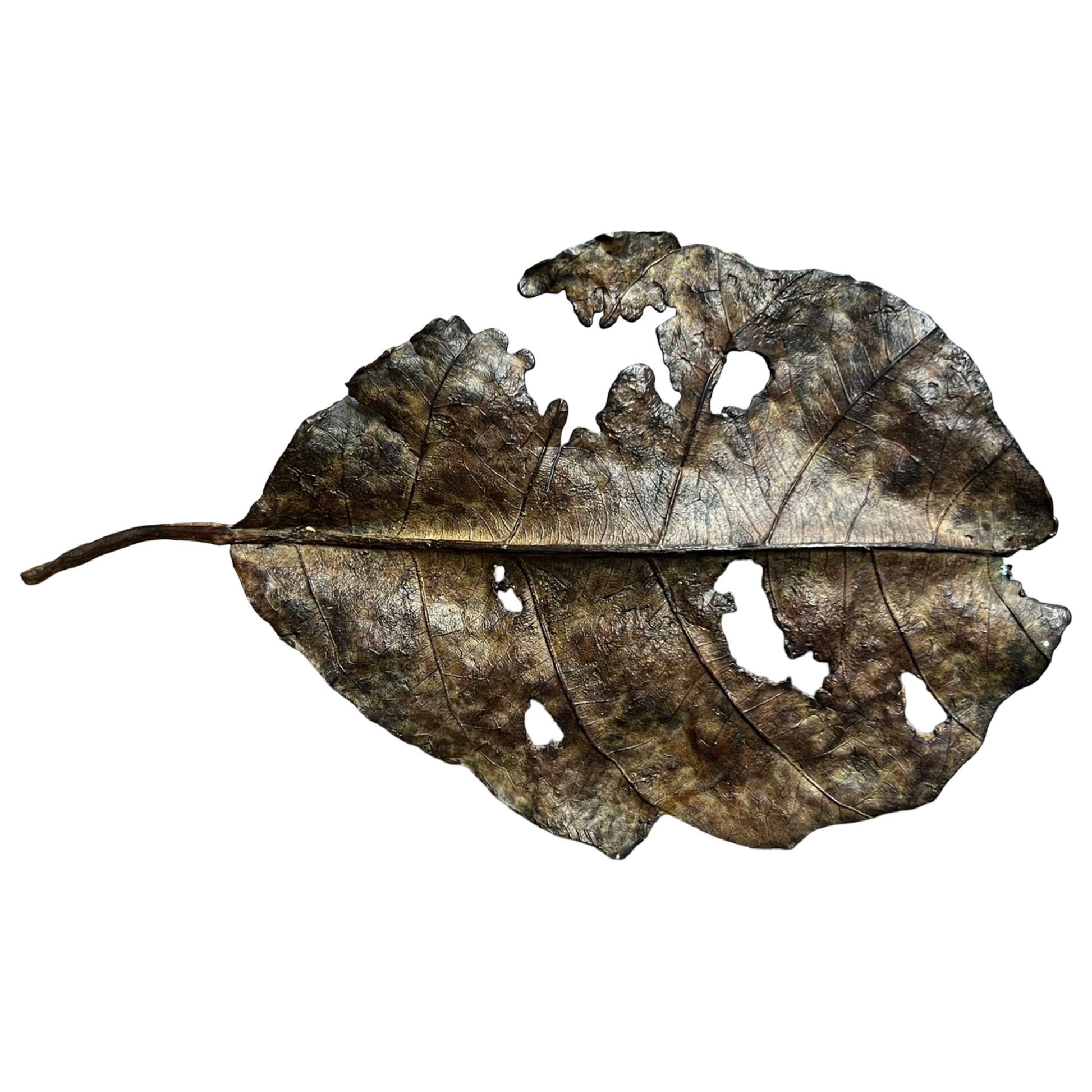 Diese von Hand gefertigten Bronzeblätter erzählen die Faszination der Natur durch das Material. Jedes Stück ist anders: unregelmäßige Ränder, markante Adern und kleine Öffnungen machen jedes Blatt zu einem einzigartigen und unverwechselbaren Werk. Die Bronze mit ihren warmen Nuancen und der natürlichen Patina verleiht Tiefe und Charakter und verwandelt ein zerbrechliches Element in ein ewiges Objekt. Ob als Einzelstück oder in einer Sammlung – sie bringen die poetische Erinnerung an den Wald und die Vergänglichkeit in den Wohnraum.