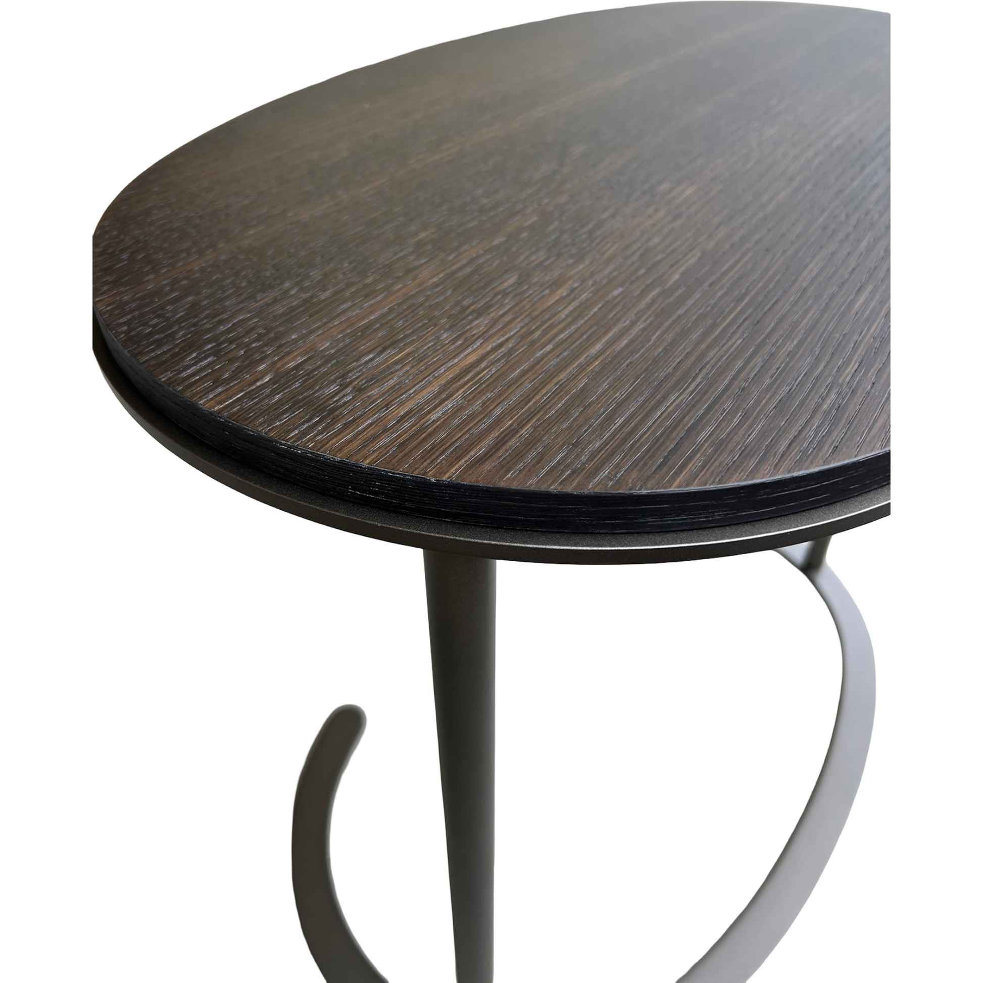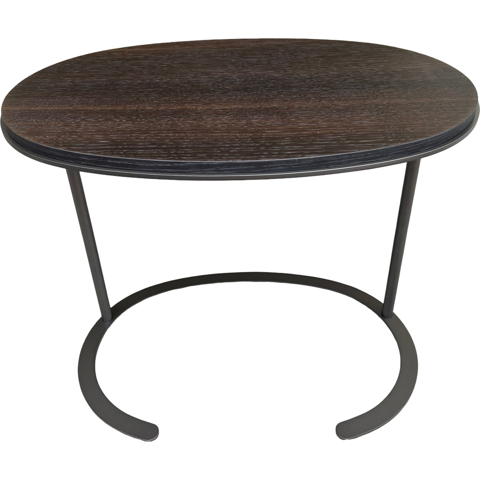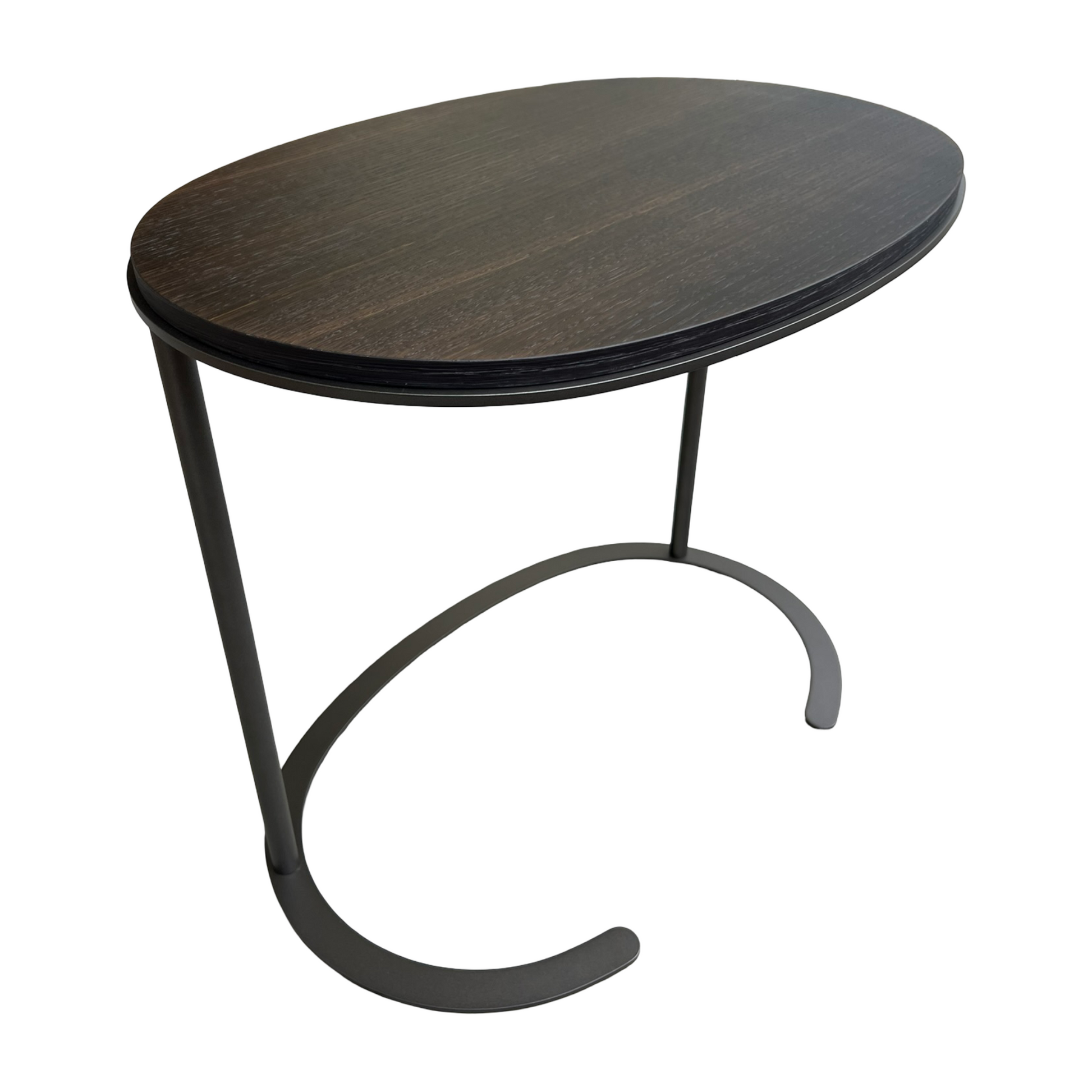 Der Beistelltisch Ortis von Lema ist ein elegantes und vielseitiges Möbelstück. Die ovale Tischplatte aus dunklem Holz überzeugt mit einer edlen Oberfläche und ruht auf einem leichten Gestell aus lackiertem Metall, das Stabilität und Charakter verleiht, ohne die Form zu beschweren. Mit seinen kompakten Maßen eignet sich Ortis perfekt als Couchtisch, neben einem Sofa oder als Ablage im Schlaf- oder Arbeitszimmer.