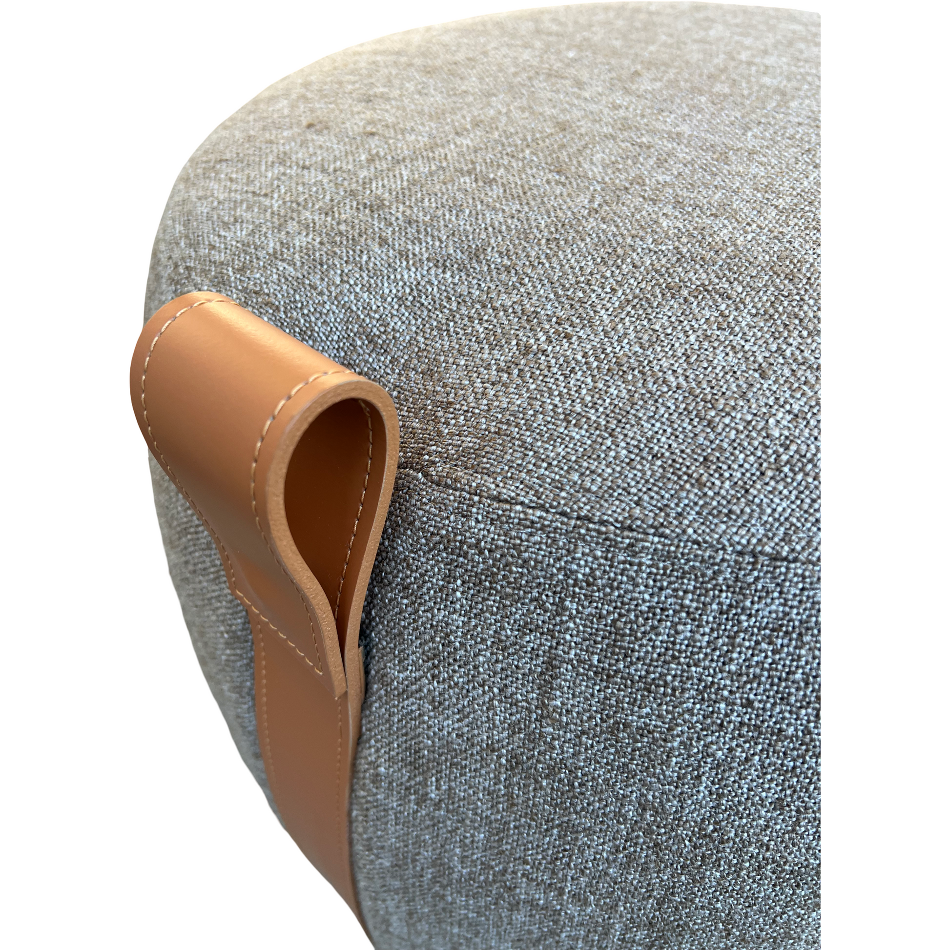 Erhältlich in zwei Größen, kann er einzeln oder im Duo verwendet werden. Die weich gepolsterte Sitzfläche mit Stoffbezug lädt zum Entspannen ein, während die Riemen aus gealtertem Naturleder – ein Ausdruck der handwerklichen Sorgfalt von Lema – ein unverwechselbares und zugleich funktionales Detail darstellen.