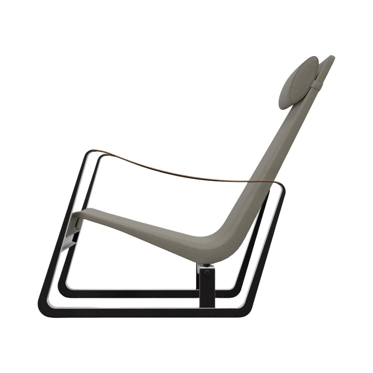 Dieses Modell ist mit einem schwarz pulverbeschichteten Untergestell, einem Bezug Hola Trüffel und Gleitern für harte Böden ausgestattet – eine elegante und zugleich warme Materialkombination, die die klare Linienführung des Entwurfs perfekt unterstreicht.