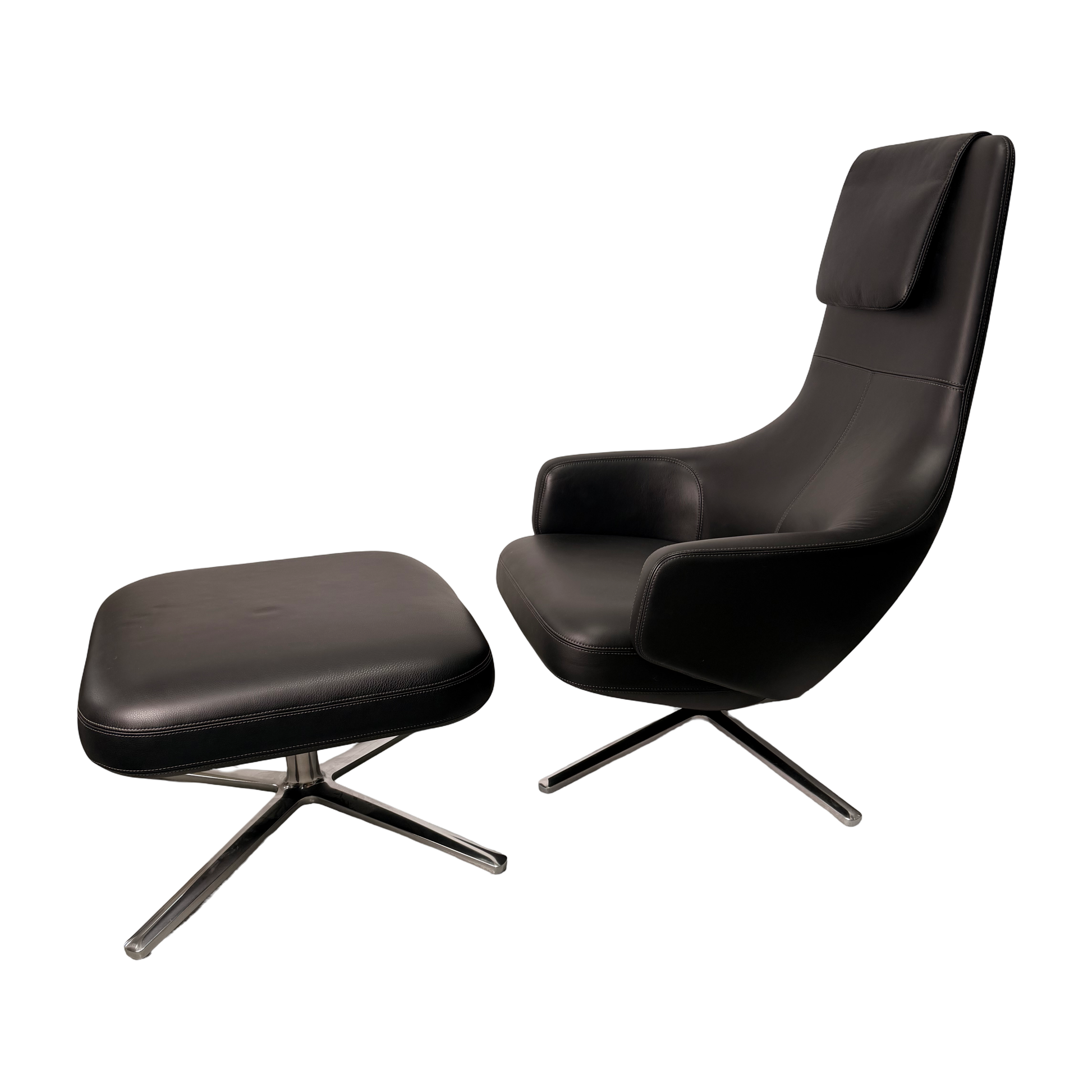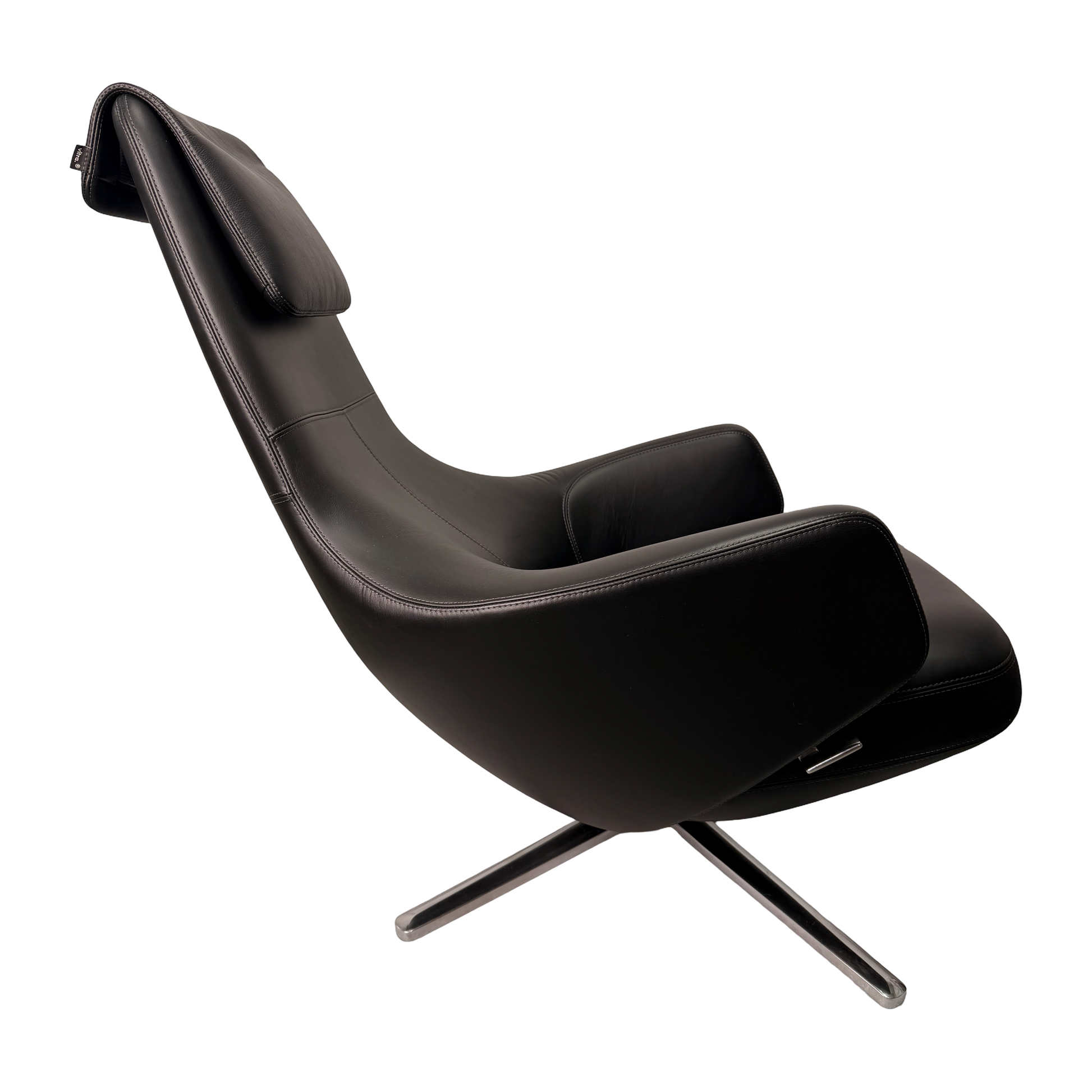 Der Repos von Vitra, entworfen von Antonio Citterio, ist ein Lounge-Sessel, der den Begriff von modernem Komfort neu definiert. In der Ausführung mit schwarzem Leder wirkt er elegant, zeitlos und passt perfekt sowohl in private Wohnräume als auch in anspruchsvolle Objektbereiche.