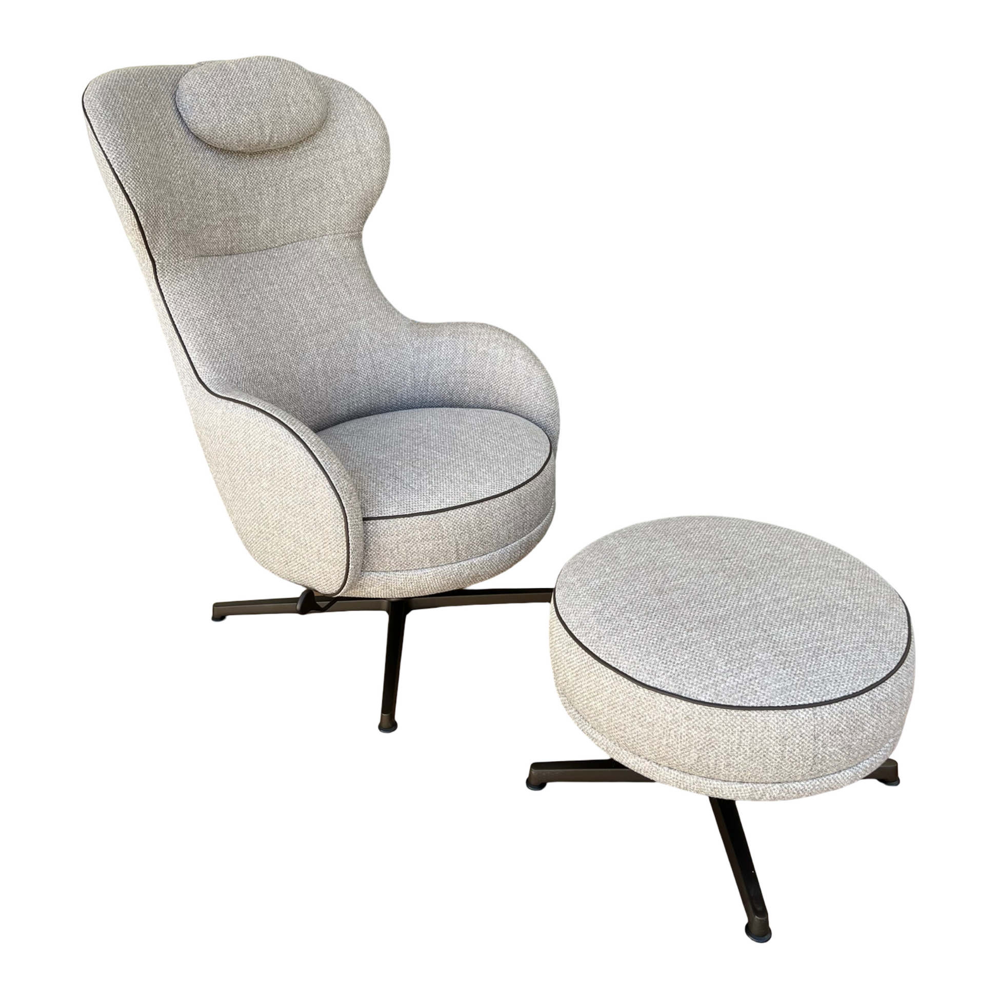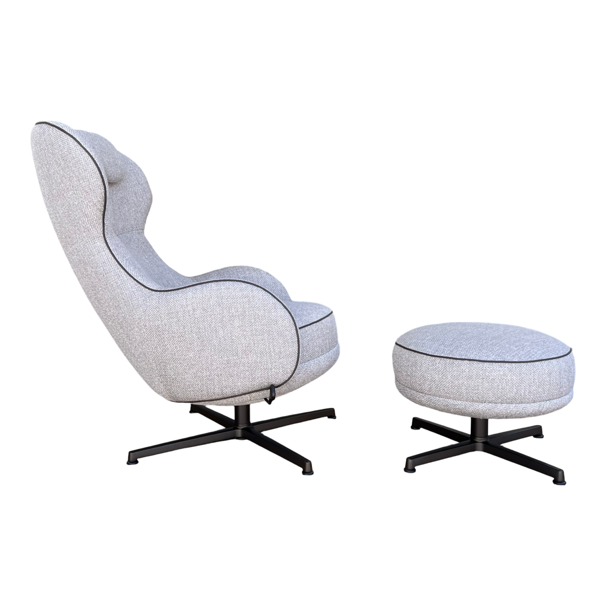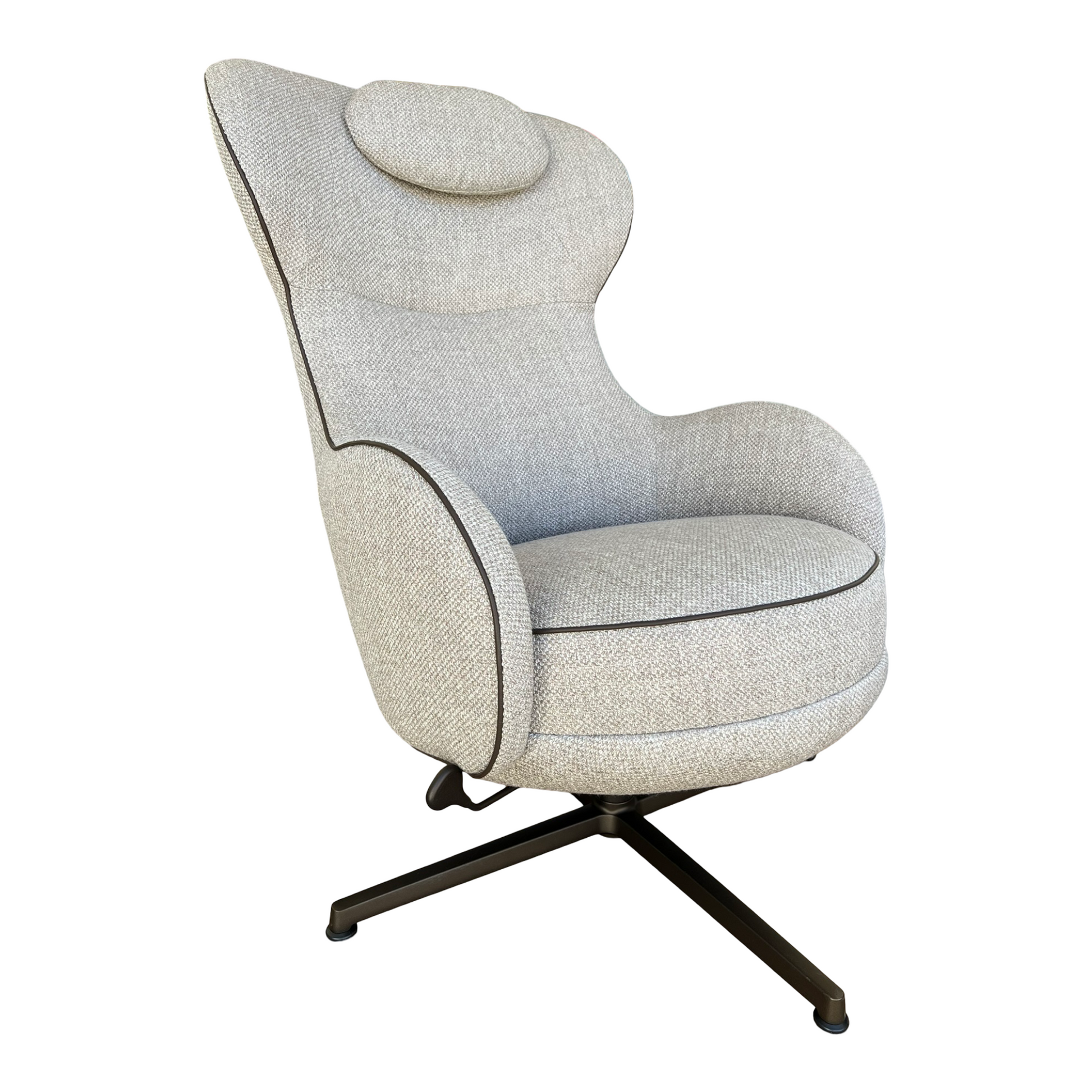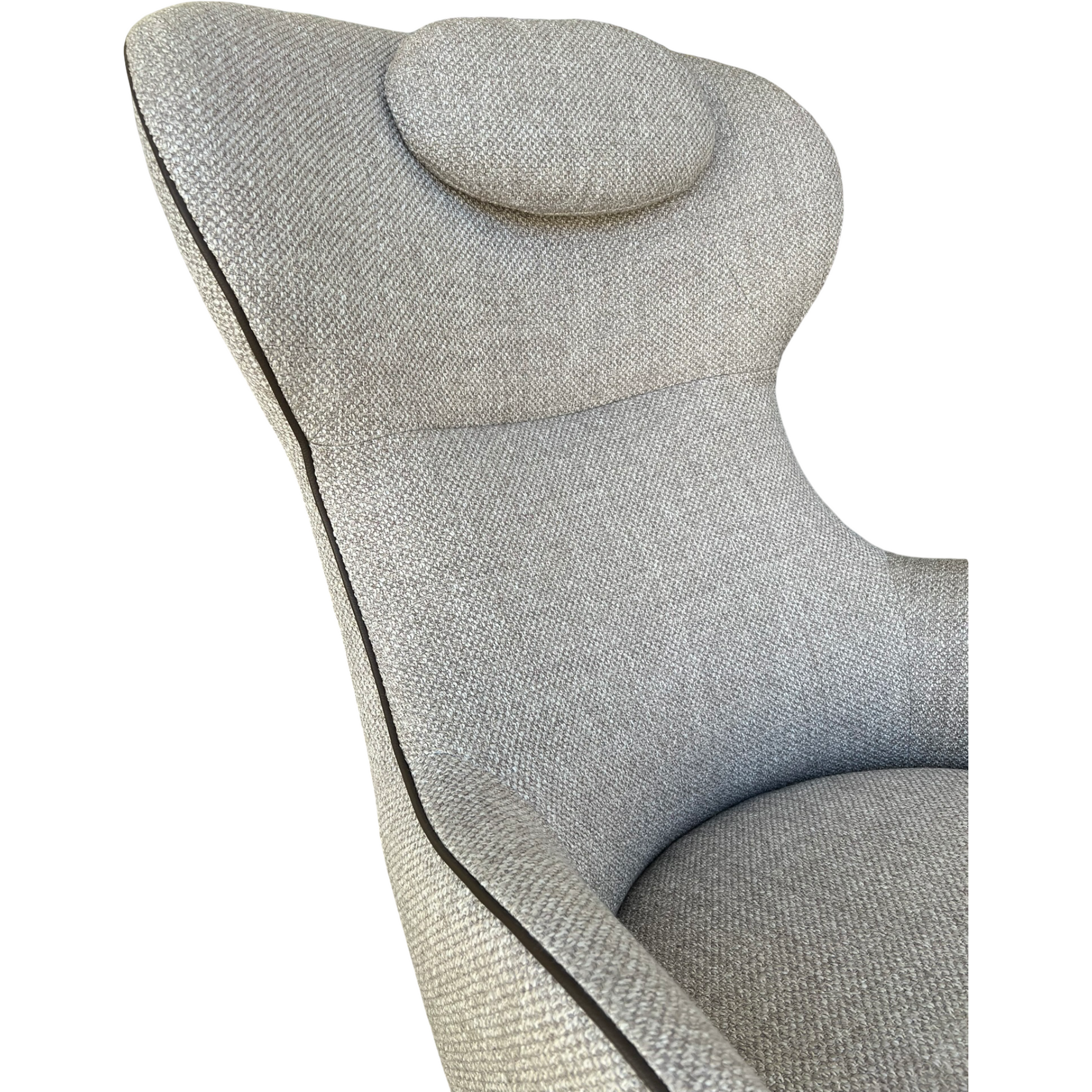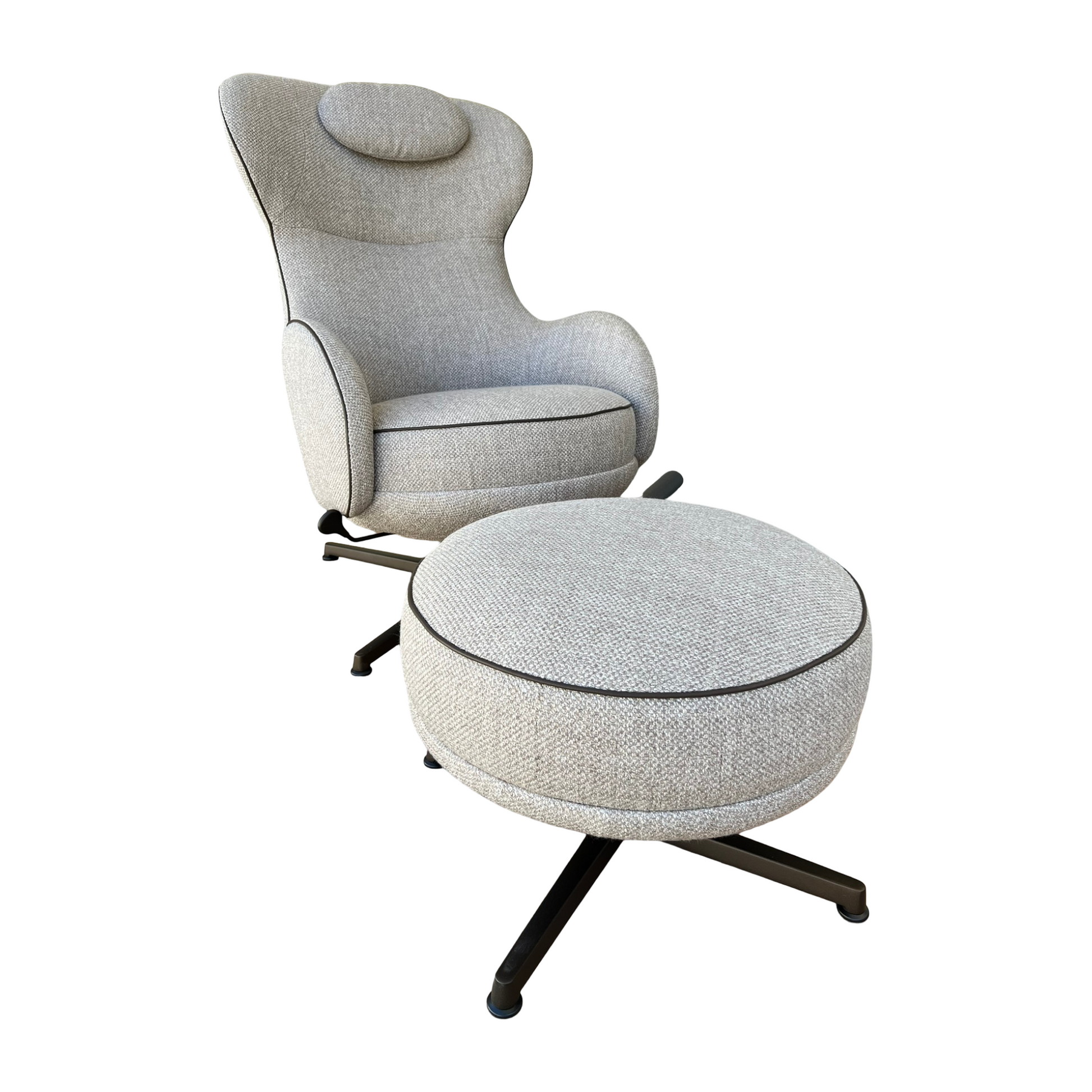 Der Sessel Tuya von Wittmann vereint Weichheit und umhüllendes Design in einer eleganten, zeitgenössischen Silhouette. Seine runde Form, die hohe Rückenlehne und die integrierte Kopfstütze sorgen für optimalen Komfort, während die handwerklichen Details wie die Kontrastpaspel die Linienführung betonen. Ausgestattet mit einem Kippsystem zur Neigungsverstellung, lässt sich die bequemste Sitzposition leicht finden. Mit dem passenden Hocker ergänzt, ist er die perfekte Wahl für entspannte Momente im Wohn- oder Objektbereich.